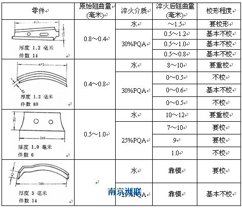 多種鈑金件在PQA水溶性淬火液中淬火后的變形統計表明,同水淬火相比,可減小淬火變形50~90%。部分鈑金件淬火變形比較如表2。