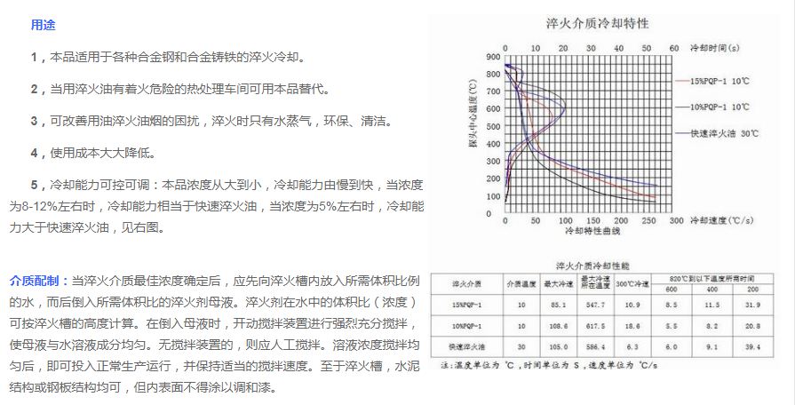 淬火質量控制因數:介質最佳濃度,應結合鋼的種類、有效厚度和淬火要求,先經推斷給出,最終由淬火實驗確定。零件淬火硬度應適時檢測,發現過高或過硬時,即應調整介質濃度或其他工藝參數。介質液面總高度在使用中損耗降低總高度的10%-20%時,應及時添加母液和相應的水。防止介質污染,應盡可能防止可溶性有機、無機物或油類物質進入淬火槽 。介質液溫應控制在10-50(℃)范圍內,本品的液溫從低到高,冷卻能力由強到弱,因此,根據淬火工藝的要求,液溫控制也有必要。