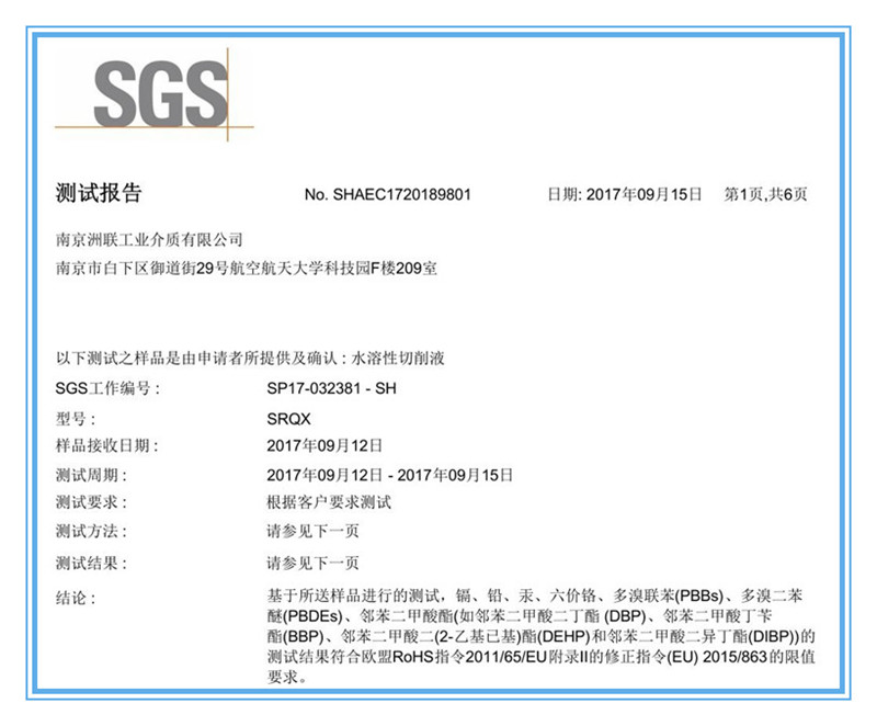 提供兩種型號的鋼鐵切削液,即SRQX-1和SRQX-7。